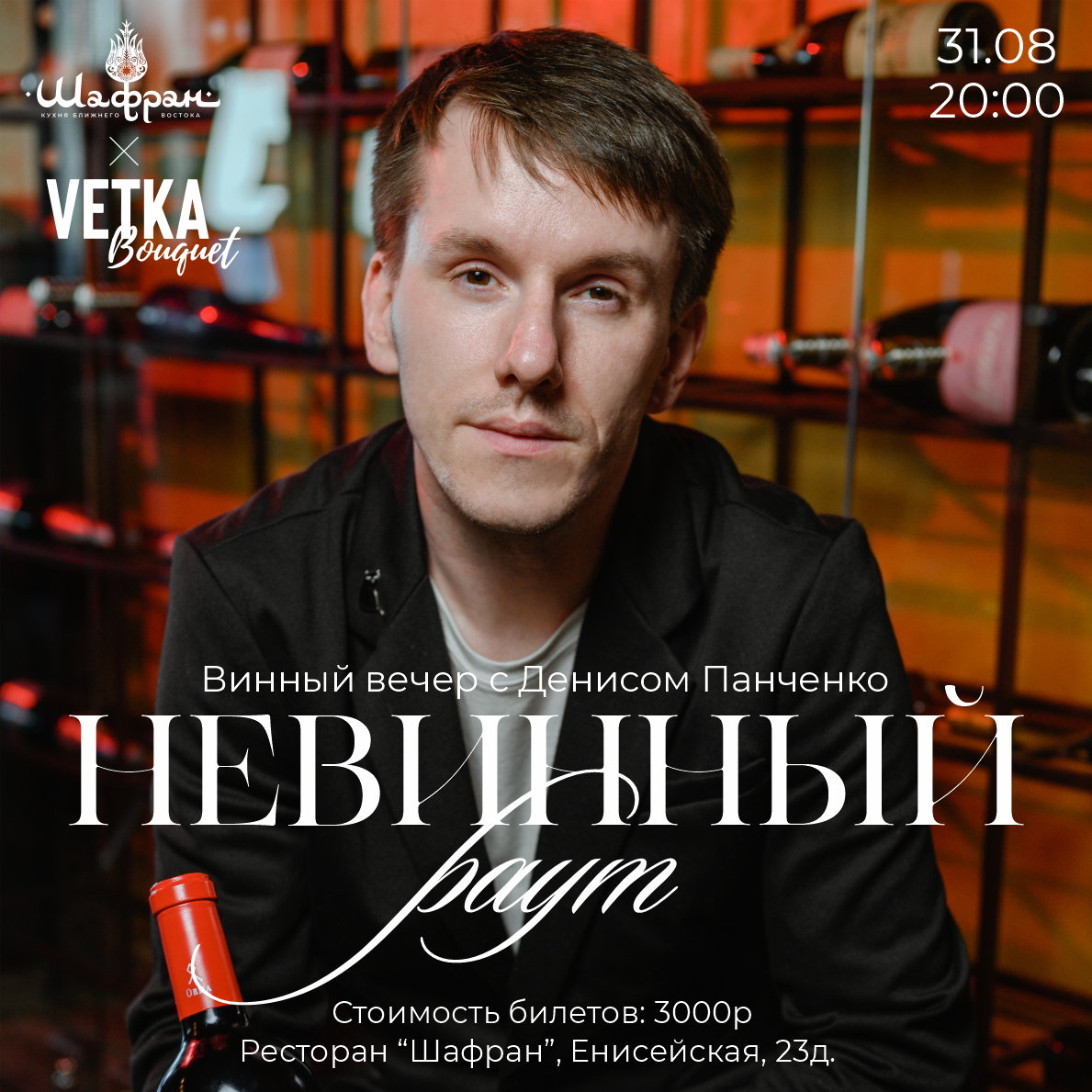 Немедленно делимся с вами этой отличной новостью и приглашаем на "Невинный раут" с сомелье Денисом Панченко 31 августа, в четверг, в 20:00.